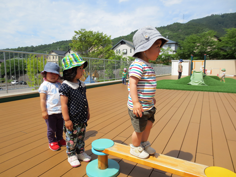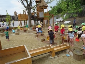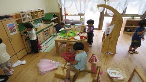 好きなあそびを自分で見つけてあそぶ「自由あそび」。課題に沿ってあそぶ「課題あそび」の時間。